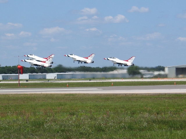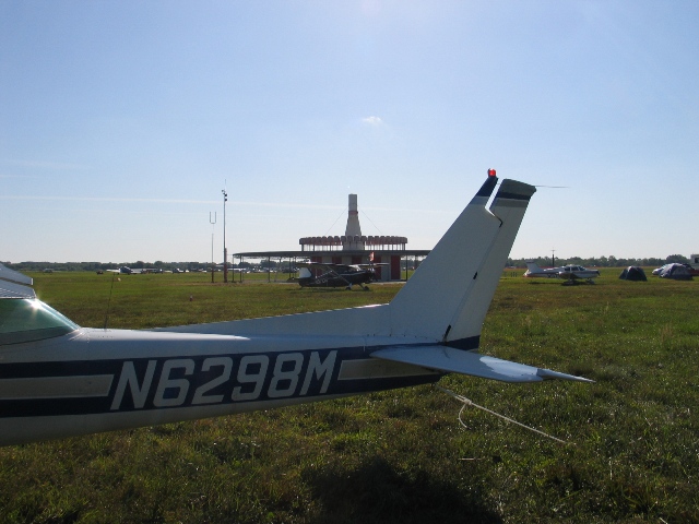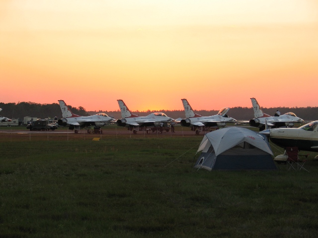 There are two really big fly-in in the US each year. Sun 'N Fun is second only to Oshkosh. Since Sun 'N Fun is held in Lakeland, Florida, and that is a lot closer to me than Oshkosh, Wisconsin is. Lakeland is a three hour drive by car, but is only about an hour and a half by plane, so of course I wanted to fly there. My original plan was to just fly up and back in one day, since that was possible with the airplane. I also decided to take a day off work, with the theory that it would be less crowded during the week than on the weekend. I finally decided to go up on Friday, but when I looked at the schedule of activities, I saw that in addition to the daily afternoon airshow, there was also an night airshow. During the airshow, the runway is closed for arrivals and departures. The runway opened up at 6 pm after the day show, but closed again at 7:30 pm for the night show. I decided I did not want to get in the middle of the traffic jam that would happen when everyone tried to leave in 90 minutes, so I decided to bring a tent and camp out next to the plane for one night, and then leave sometime Saturday morning. I had several people I know from the airport mention they wanted to ride up with me, but none of them panned out. I think it was because I was spending the night there. No matter, that made travel plans very easy, since I only had to convince myself something was a good idea. And that was usually pretty easy! Whenever you schedule a plane before they open in the morning, someone calls you to let you know what the combination is to the safe they keep in the hallway so that you can get the keys out. I usually try and call myself, just to remind them I have the plane first thing in the morning. At 8:10 pm Thursday night, I realized that I had forgotten to call them, and they had not called me. I tried calling the office, but they are only open until 8 pm, and had already left. Shoot! That is why I call them myself! I looked at the online schedule, and saw that one of the instructors had a lesson a 7 am, so I would just show up then and he could get me the keys. My plan was basically intact. I awoke on Friday at 5 am to get ready to go. I wanted to be at the airport before 7am so that I could get the keys as soon as possible. My original goal was to be in the air around 7 am and arrive at Lakeland around 8:30 am. The exhibits opened at 9 am, so I would have a little time to tie down the plane, etc. I arrived at the airport, and as I was climbing the stairs to see if I could get the keys to my plane, another student was coming down with the keys to another plane. I asked him if the safe had keys to any other planes, and he said there was a bunch in there. I asked him what the combo was, and when I opened the safe, the keys to my plane were there. Whew! This is one of the inconveniences of renting out your plane, I guess. I grabbed the keys and started moving stuff from my car to the plane. It only took two trips. Walking through the lobby, I saw another student who was flying up to Sun 'N Fun, also. He was going as a passenger with someone I didn't know. I guess it was a popular day to fly up. Although I had gotten a weather briefing on the internet the night before, and in the morning before I left the house. I thought it would be a good idea to call in for one, also. Sometimes when I call in, the briefer will emphasize something I missed reading the text on a screen. Well, that turned out to be a mistake. Because of Sun 'N Fun, there were a lot of NOTAMs (Notice to Airmen) at Lakeland (LAL). She had to read them all to me, and the entire call, which usually only take five minutes, ended up taking 20 minutes, and I didn't learn anything new. Now I was behind schedule. I finally got in the air around 7:30. The flight up was uneventful until I arrived in Lakeland. Here is a picture I took flying over the Sebring airport. It is located next to the famous racetrack. I should have waited until I was a little closer before I took the picture, but you get the idea. The racetrack is on the left, and the runway is on the right.